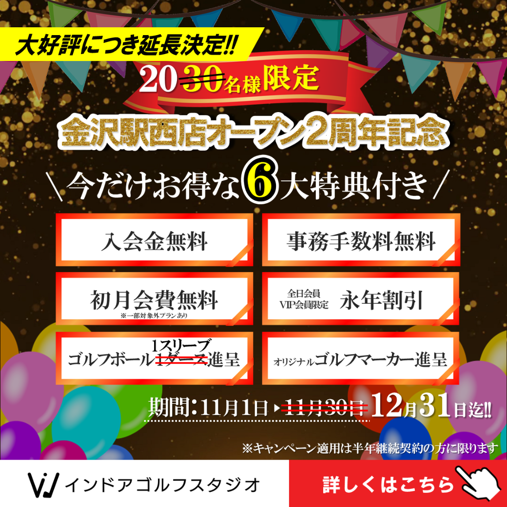 | インドアゴルフスタジオ金沢駅西 | 屋外練習場 | 他店インドア練習場 | |